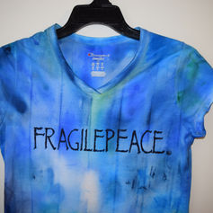 These hand painted shirts are produced for FragilePeace, a 501 (c) (3) nonprofit. Please visit Fragilepeace.org